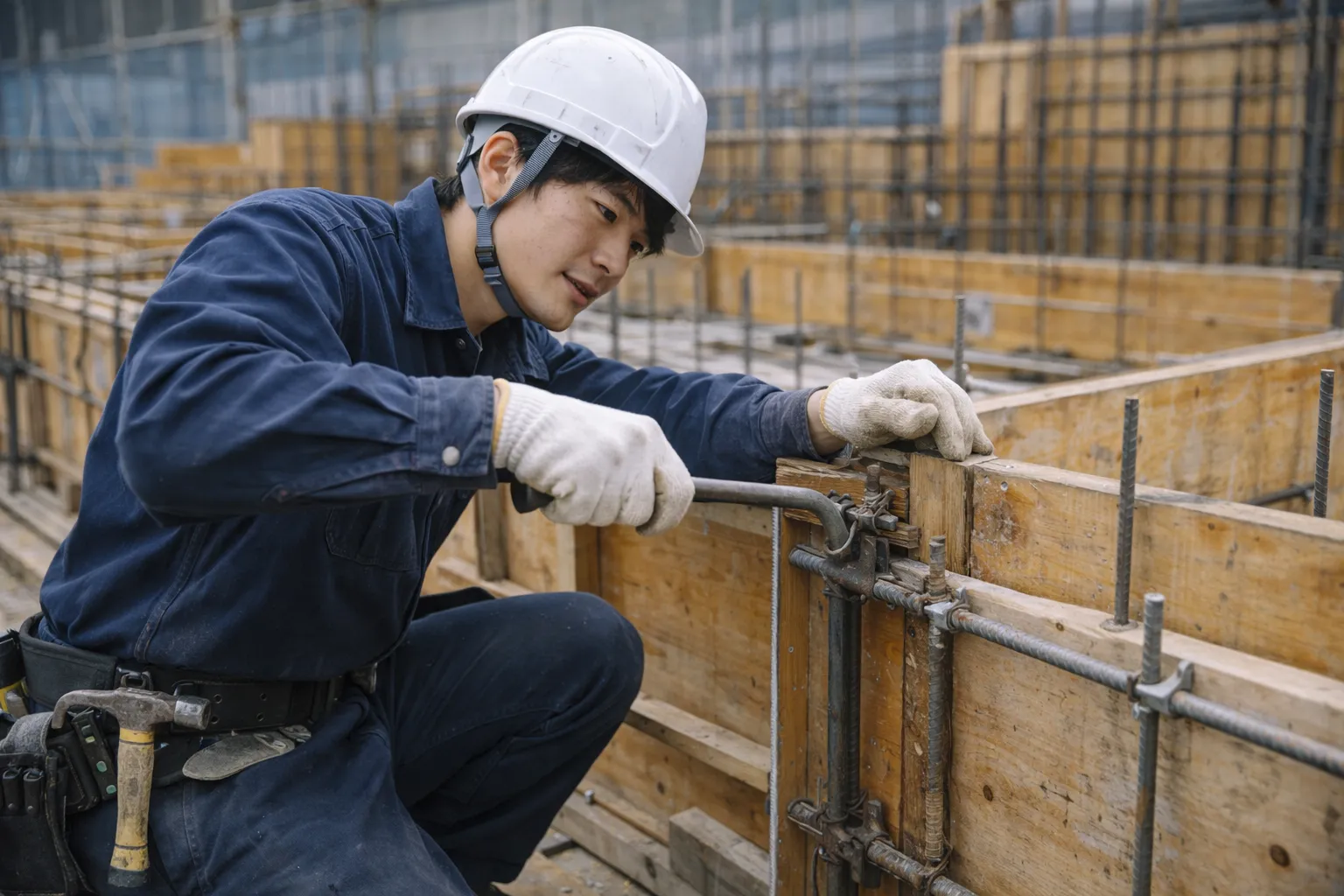型枠施工は、建物や構造物のコンクリートを流し込むための型を作る仕事です。図面をもとに木材や合板を加工・組立し、正確な形状をつくることで、建物の品質や強度に直結する重要な役割を担います。精度の高い施工が求められるため、経験と技術が評価されやすい職種です。建設の基礎を支える専門職として、現場での存在価値が高く、安定した需要があります。