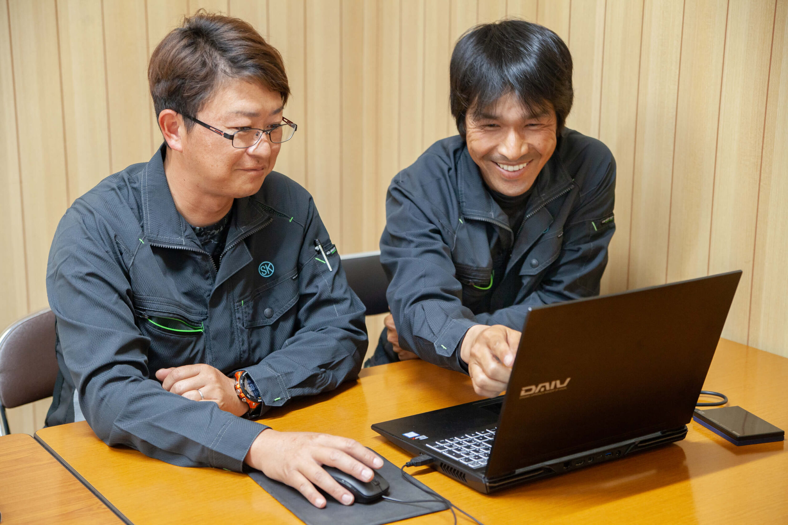 - 現場で撮影した写真や測量結果を専用のソフトを用いて、施工管理資料として作成します。近年では、書類作成及び提出は電子上で行われるため、従来の様な長距離の移動はないことから、ほとんどの場合は通常の勤務時間内で完了します。