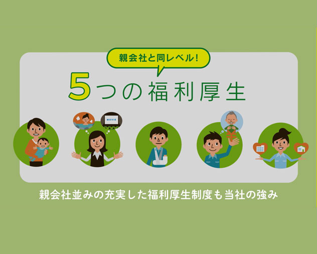 当社は、「人が資本」という観点から、福利厚生に力を入れています。積立年休制度、確定拠出年金、団体長期障害所得補償保険、がん保険、アウトソーシングによる福利厚生サービスや社外相談窓口などを導入しています。