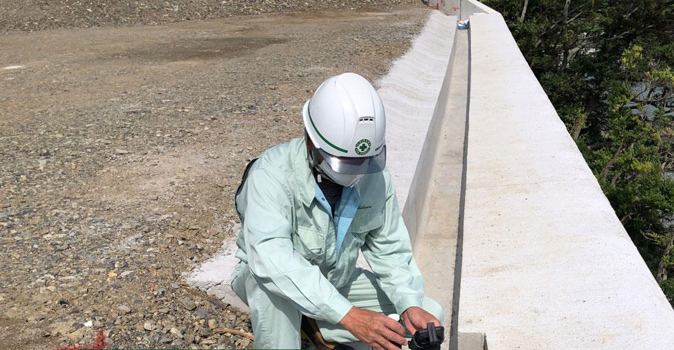 設計図通り作業が進んでいるかを測量します。確認作業でスマホで工事写真を撮影します。