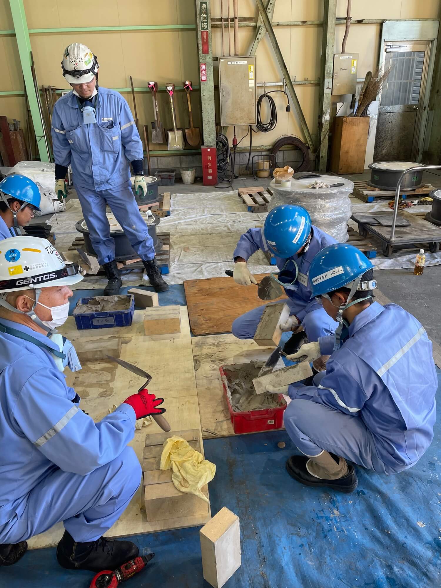 4~6人一組の作業で、製鉄所内の各種工業炉の内側にある耐火物(レンガ)の施工作業やそれに伴う解体作業等が主な作業となります。このため、重量物の取り扱いや安全保護具の着用が必須な場合がございます。