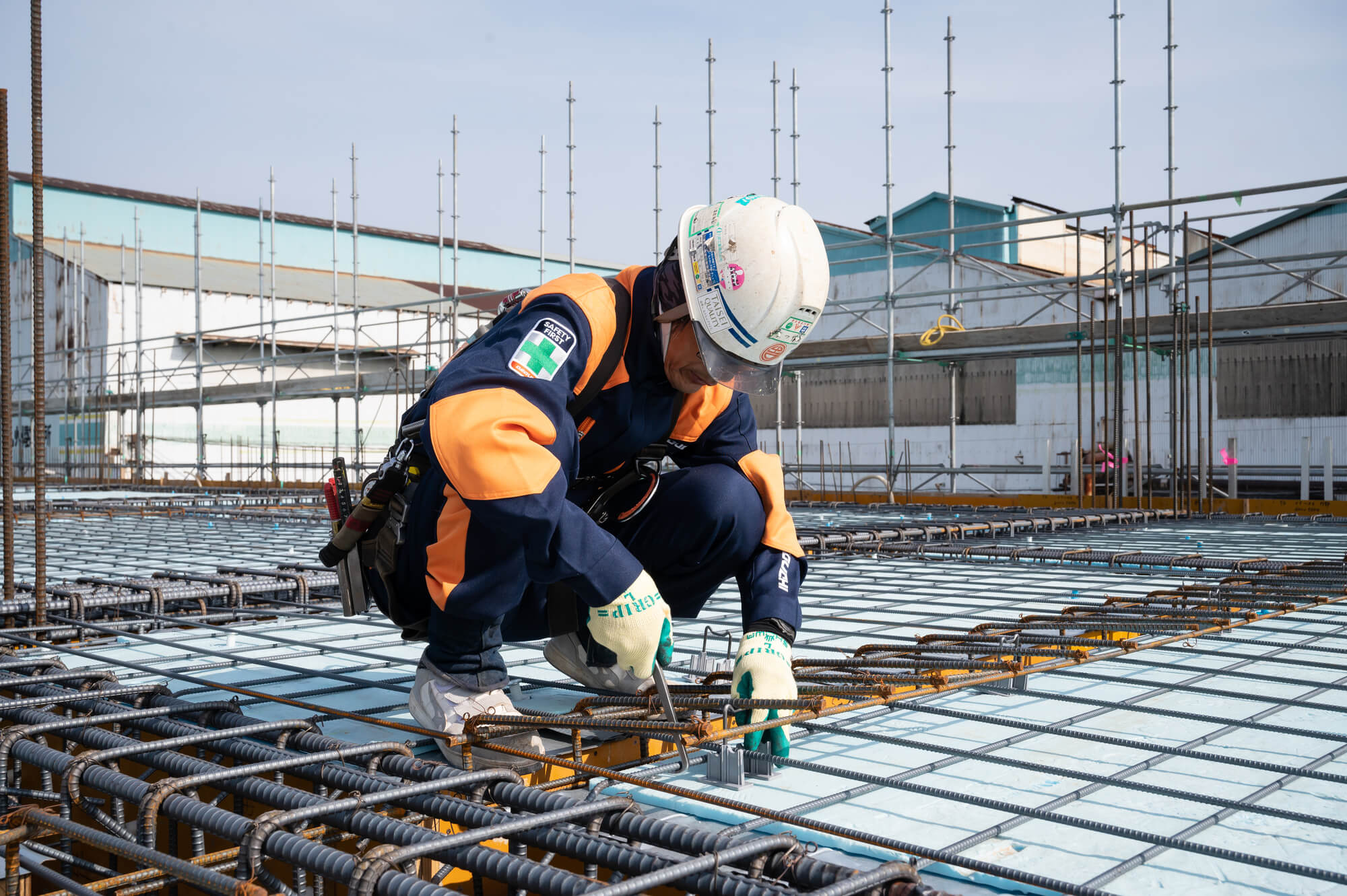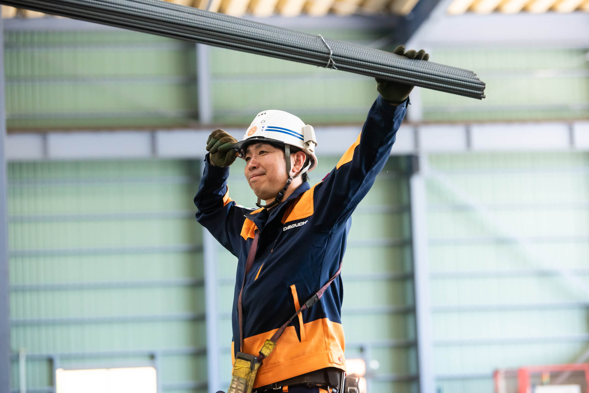 鉄筋工事一式(専門工事業)、コンクリートに埋め込む鉄筋の加工、組み立てが主な業務です。