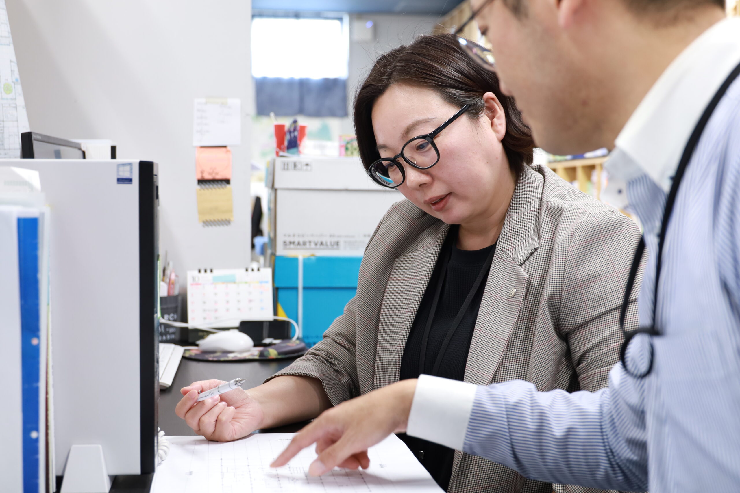 入社してすぐは大工だったので現場で「これはどうやればいいですか?」と聞いて教えてもらっていました。いまは昔の大工さんみたいに「見て覚えろ」という時代ではないですね。私は自分の経験も踏まえながら丁寧に教えてあげたいと思います。中にはパソコンが苦手な方もいらっしゃるので、見積もりソフトの使い方も教えますし、「現調」のときに気を付けるポイントも具体的に教えてあげたいなと思います。建築業は大変なことが多いですが、やり甲斐があってお客様に喜んでいただける仕事だと思います。自分が担当したものがカタチとして残るので、「ものづくり」が好きな方はぜひ挑戦してほしいと思います。