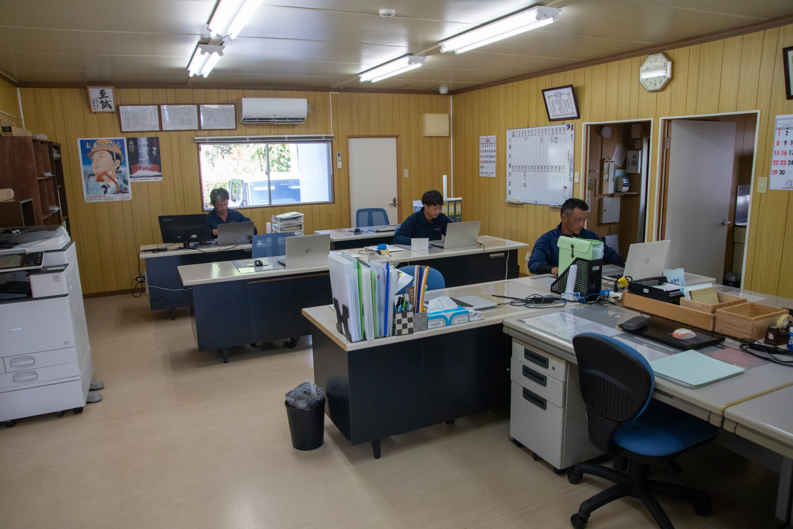 事務所で発注書や安全書類、計画書、写真整理などの書類作成を行います。
