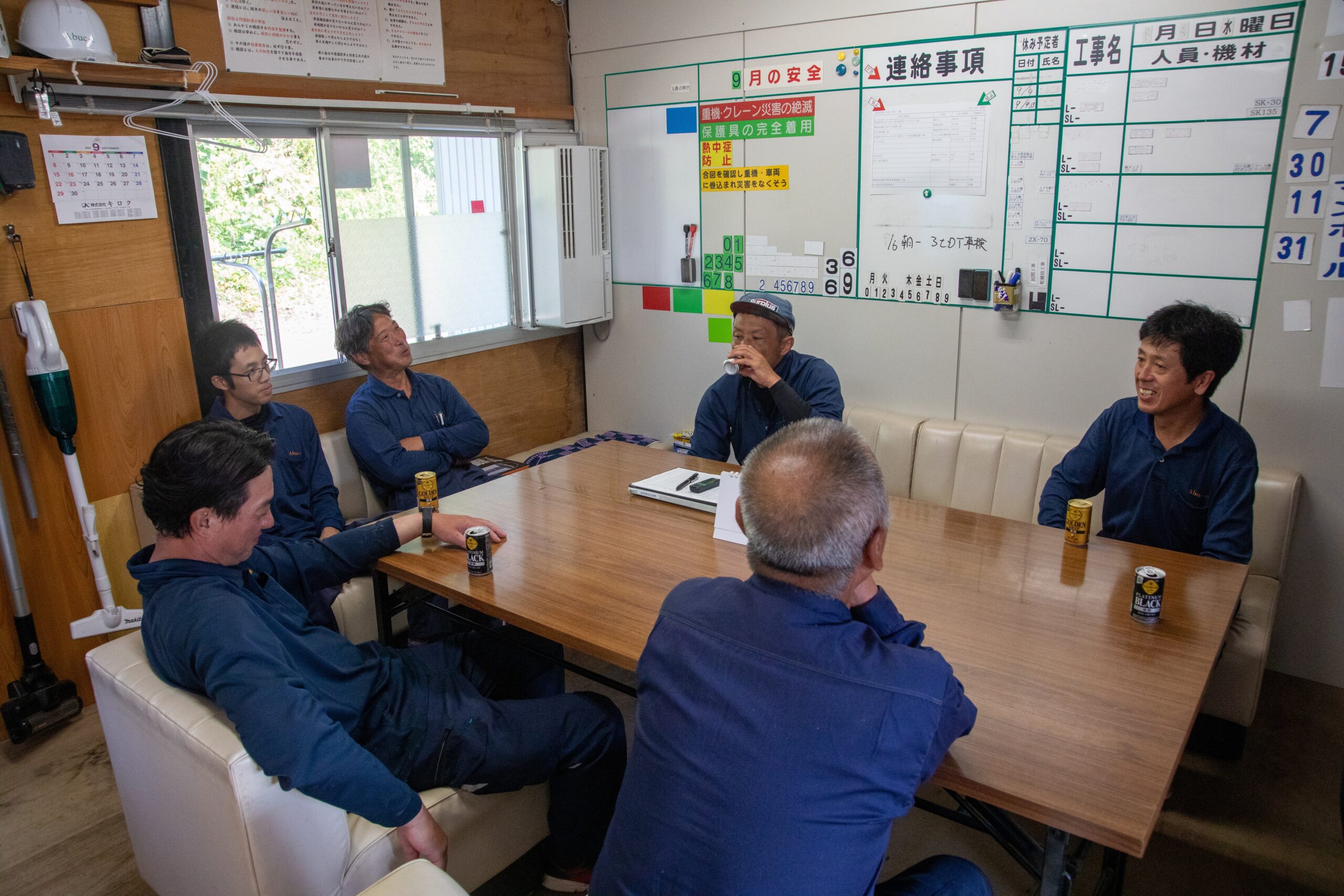 各現場毎に集合し、みんなと顔を合わせ。