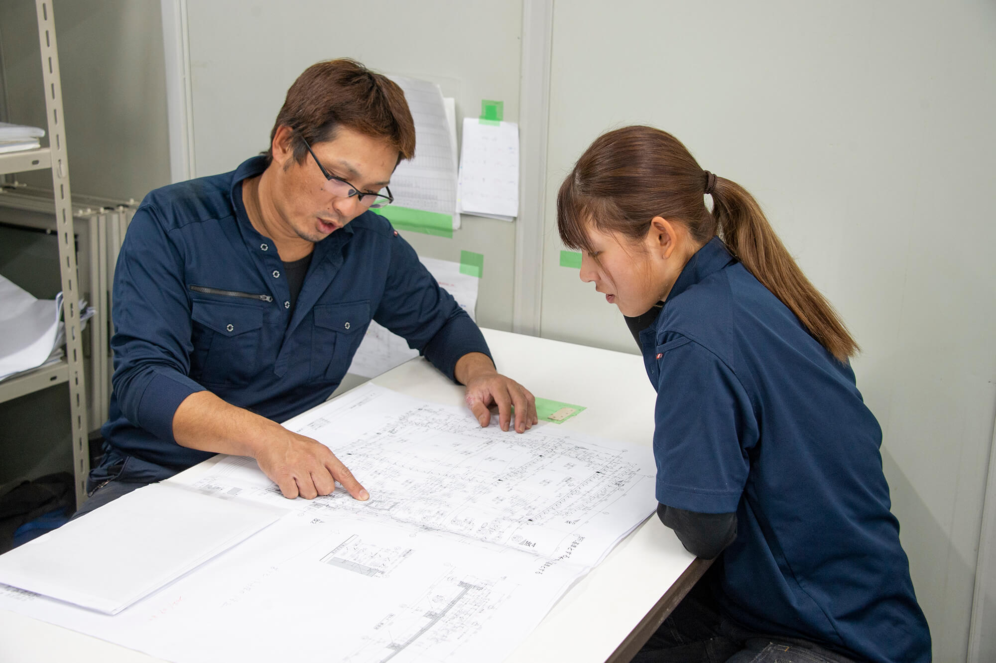 女性で現場職という事で不安もありましたが、まずは挑戦してみた事で、私は楽しく仕事が出来ているので、ぜひ挑戦してみてください!