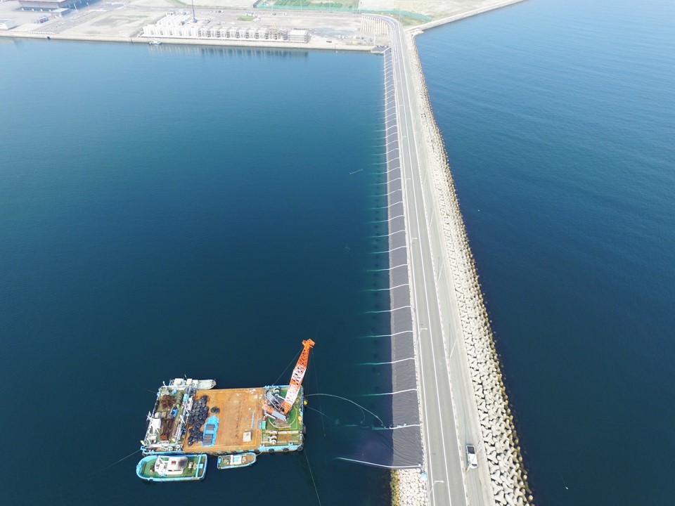 航路の安全を守る「浚渫工事」や、高潮・津波から地域を守る「海岸工事」など、海洋工事に携わる仕事です。台船・小型船舶・起重機船などの船舶や、移動式クレーンなどの重機を操縦し、現場での作業を行います。船舶や重機の点検・整備も担当し、作業環境の安全を支えます。