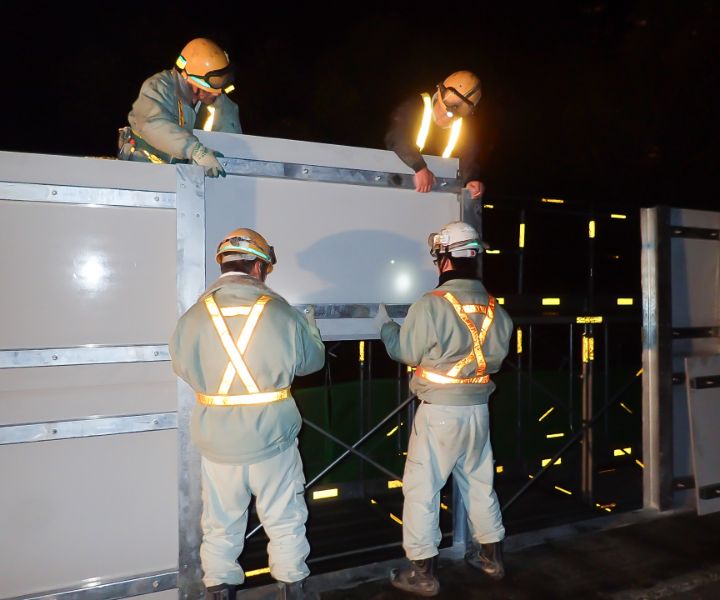 - トンネルや高架橋の付帯設備修繕を行います。遮音板、透光板、排水樋、保守用階段、検査足場など工事の内容は多岐にわたります。