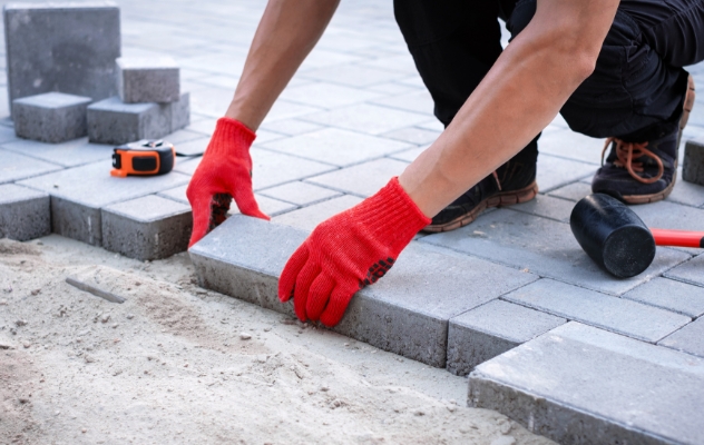 れんが、コンクリートブロック等により工作物を築造し、又は工作物にれんが、コンクリートブロック、タイル等を取付け、又ははり付ける工事