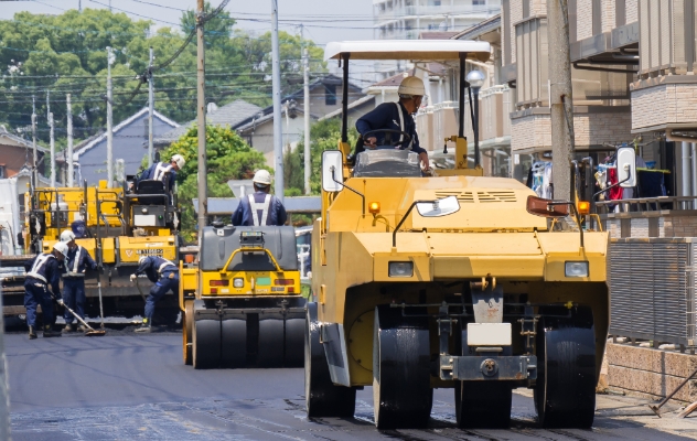 道路等の地盤面をアスファルト、コンクリート、砂、砂利、砕石等により舗装する工事