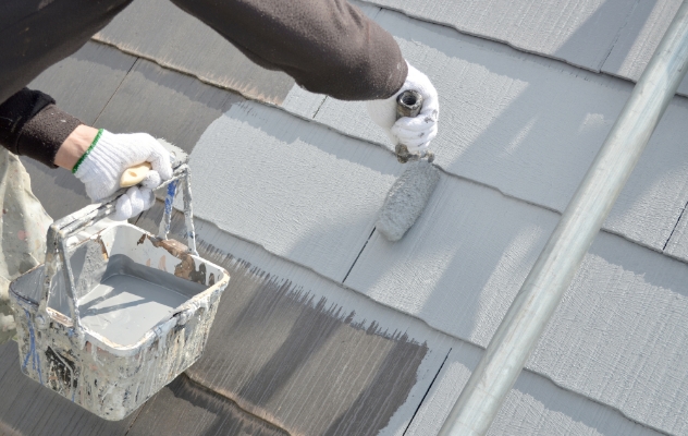 塗料、塗材等を工作物に吹付け、塗付け、又ははり付ける工事