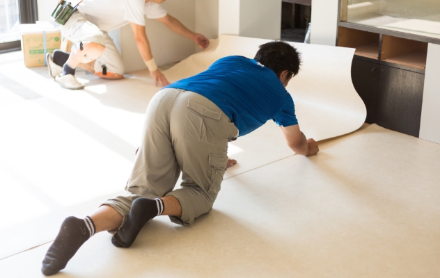 木材、石膏ボード、吸音板、壁紙、たたみ、ビニール床タイル、カーペット、ふすま等を用いて建築物の内装仕上げを行う工事