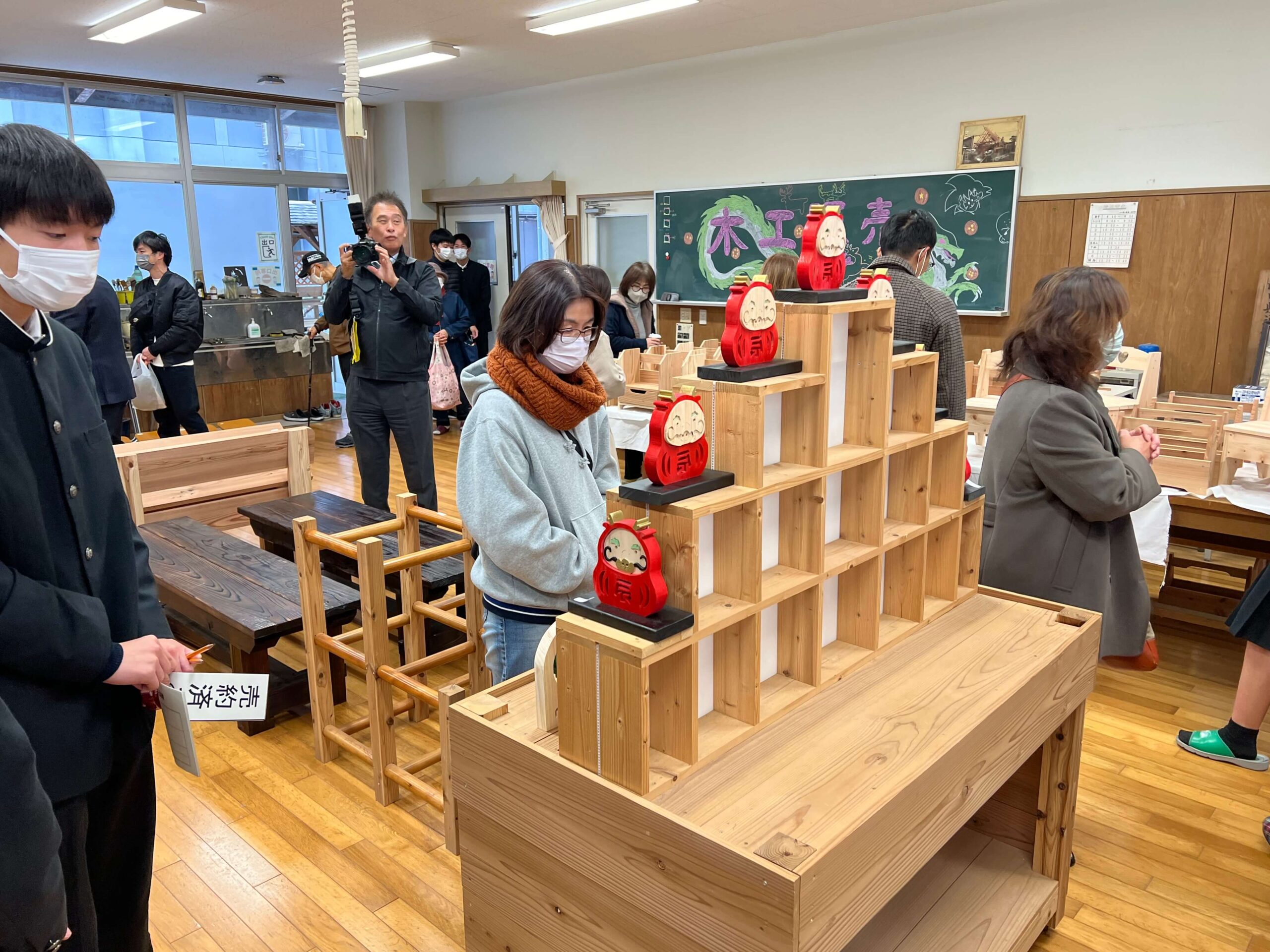 課題研究等では、ものづくりの技術を生かし、地元中学校に掃除道具入れを寄贈しました。